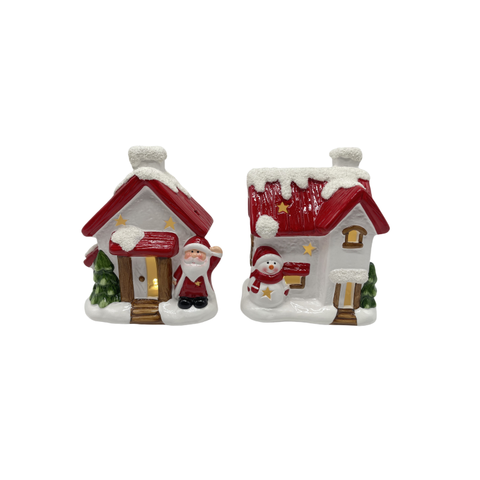 Casa de pueblo de cerámica navideña con pintura a mano de último diseño de fábrica con luz LED