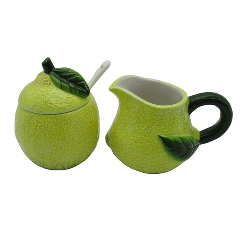 Custom Logo 3d Citroenvorm Keramische Dolomiet Water Kan Melkpot Met Zout Pot Set