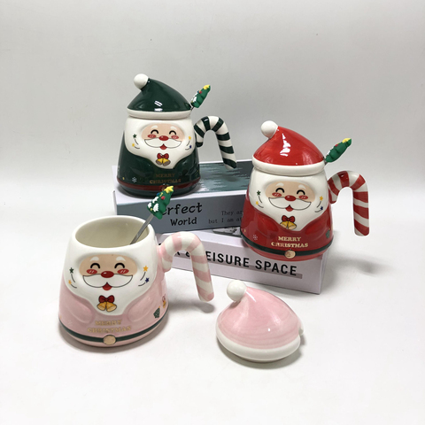 Novo Logotipo Personalizado Holiday Gift Criativo Papai Noel Cup Souvenir Mug Cerâmica Caneca De Natal Com Tampa