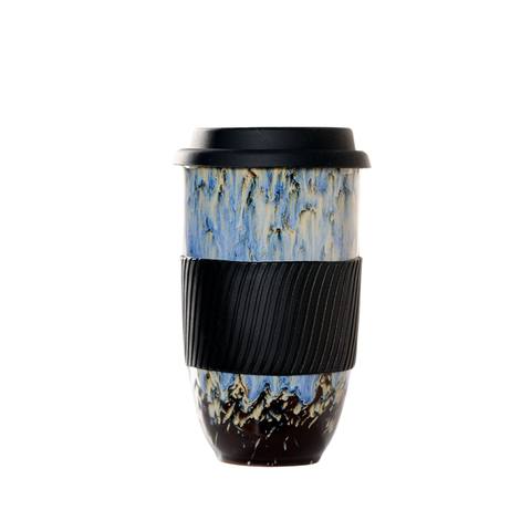 Atacado Reactive Glazed Cerâmica Reutilizável Caneca De Café Novidade Design com Tampa De Silicone para Viagens